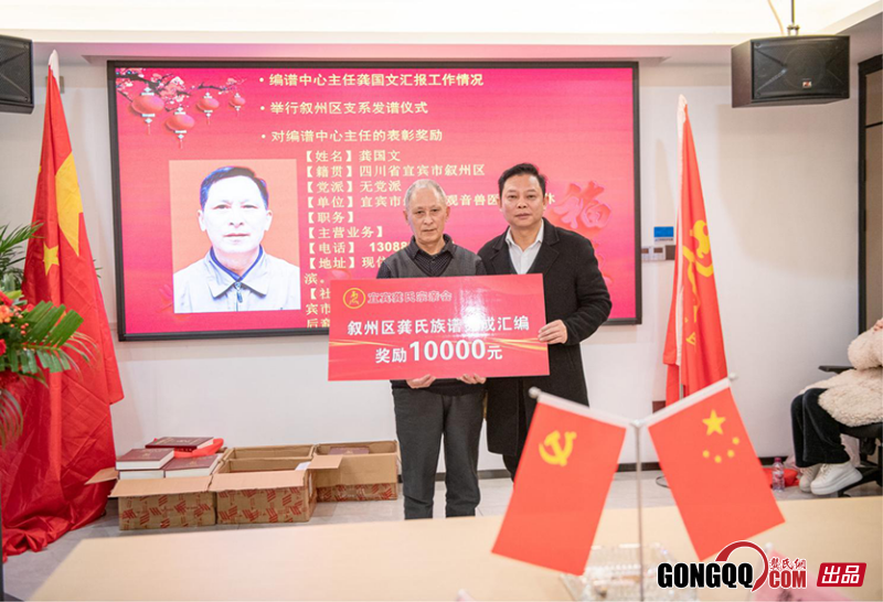 寻族谱的龚国文宗亲获得了宜宾市龚氏宗亲会的奖励