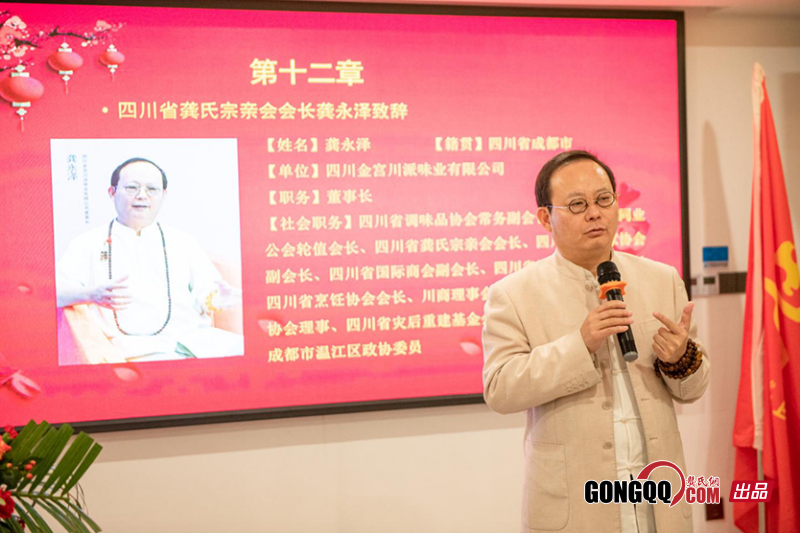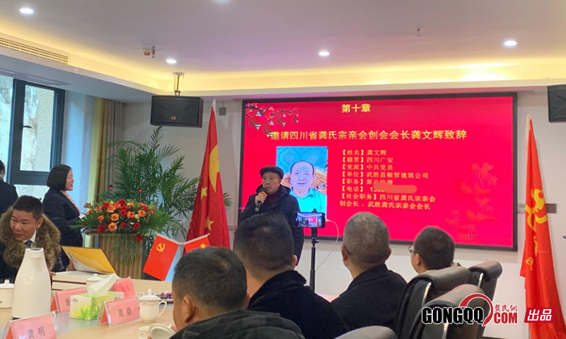 随着会议流程的不断深入,宜宾市龚氏宗亲会会长龚险峰,四川省龚氏宗亲会会长龚永泽、四川省龚氏宗亲会秘书长龚德才等宗贤的介绍和发言一一展现在我的面前。