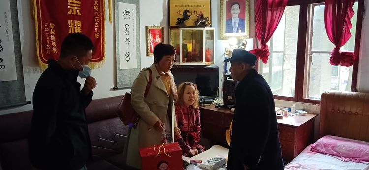 中华龚氏网四川消息(龚飞)2022年3月21日,泸州市龚氏宗亲会执行会长龚艳、常务副会长龚建华、副会长兼秘书长龚飞、理事龚传芳一行前往龙马潭区高坝长江村住宅区看望慰问患病老人、87岁的龚仲良宗亲,送上了慰问品和慰问金,带去了龚氏家族血浓于水的关怀。
