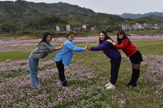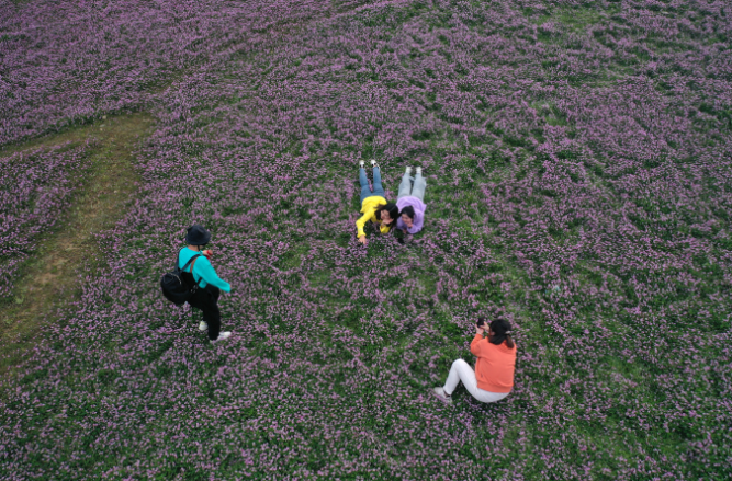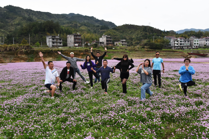 每到三月,江西省上饶市广信区湖村乡茗洋水库干涸的库尾,数百亩紫云花沐浴着春风蓬勃地生长,远看像铺在地上的紫绿相间的地毯,蔚为壮观,成了市民踏青春游的好地方。