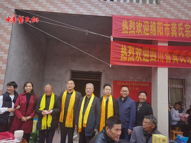 中华龚氏网四川电(龚继承)4月5日,绵阳三台县建中镇竹箕湾龚氏宗亲举行一年一次的清明会,四川省龚氏宗亲会常委兼秘书长龚德才,中华龚氏网负责人龚国林,龚举敏财务总监兼常务副秘书长,副会长兼副秘书长龚继承、理事龚春会、龚术容以及绵阳市龚氏宗亲会筹备组长龚开平,筹备副组长龚明扬、龚桂明等一行以及竹箕湾龚氏宗亲后裔约200多人参加。