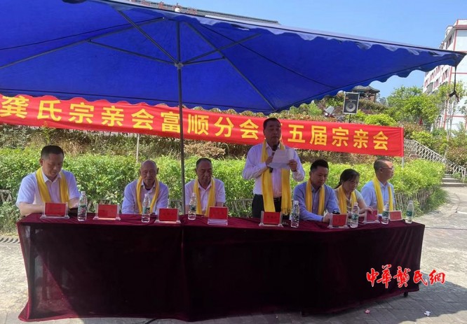 会上, 富顺分会会长龚联富致辞,他首先对省宗亲会秘书长龚德才一行的到来,表示了热烈的欢迎。他指出:龚氏宗亲的后人要弘扬祖德、积极促进和加深宗族联谊,要念血脉相通之情,思同宗共祖之谊,互相帮助,共谋发展宗族不分南北,不分支系,精诚团结,互通有无,共谋发展,希望所有宗亲:有钱出钱、有力出力,尽自己最大的力量为宗族添光彩,这也是我们祭奠祖先,修编族谱的重要意义。并对今后的工作进行了安排和部署。