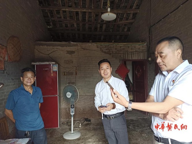 中华龚氏网公益7月23日电(龚举敏)仲夏之时,烈日下,2023年7月21日,秘书长龚德才一行来到了遂宁市船山区马安镇新桥村龚连伟家中探望和验收房顶漏水维修工程。一同前往的有:龚国林、龚举敏、龚文道及抖音平台博主@南充折耳根团队一行工作人员。