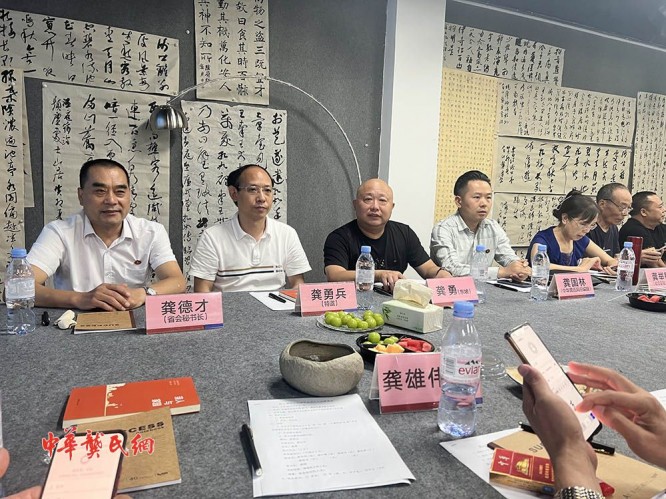 中华龚氏网四川电(龚举敏)7月29日,四川省龚氏宗亲会秘书长龚德才、中华龚氏网总编辑龚国林、常务副秘书长龚举敏一行前往眉山市东坡区参加眉山市龚氏文化研究会召开的最后一次筹备工作会议。应邀参加会议的还有:常务副会长龚明良、顾问龚勇兵。