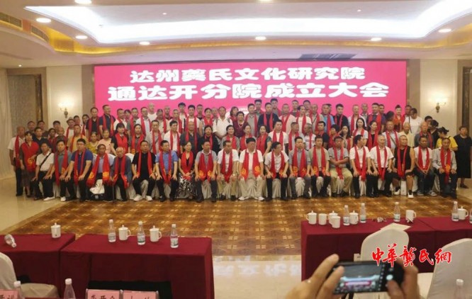 中华龚氏网四川电(龚众)2023年8月5日上午,喜吉祥瑞,鼓乐喧天,达州市龚氏文化研究院通达开分院成立大会在达州市升华国际大酒店隆重举行。四川省龚氏宗亲会秘书长龚德才受邀前往恭贺,随行人员有中华龚氏网创始人龚国林、财务总监兼常务副秘书长龚举敏、外联部常务副部长龚俊、副秘书长龚众、理事龚文道。