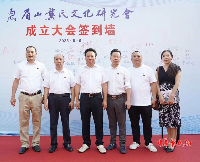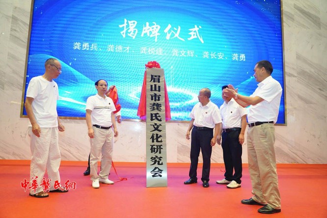 中华龚氏网四川电(龚举敏)2023年8月9日,眉山市龚氏文化研究会成立大会在眉山市东坡区长富园林酒店隆重举行。省龚氏宗亲会执行会长龚榜建、创会长龚文辉、秘书长龚德才、中华龚氏网负责人龚国林、财务总监兼常务副秘书长龚举敏、常务副会长龚明良、副会长龚志平、龚跃兵、顾问龚勇兵、副秘书长龚小平及眉山各地宗亲代表250余人参加了会议。