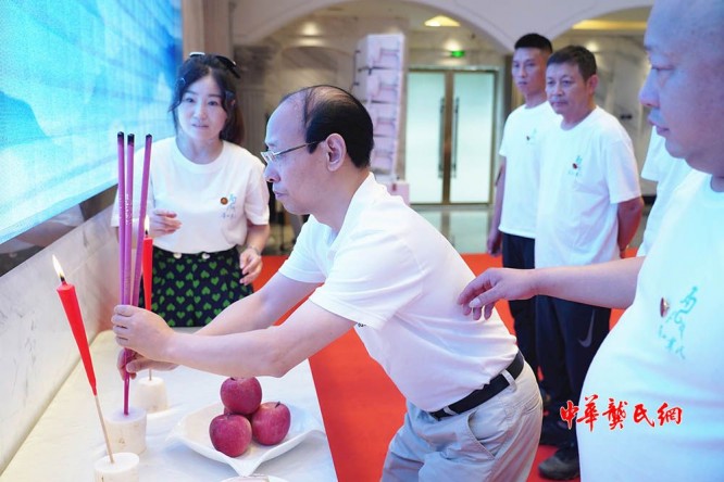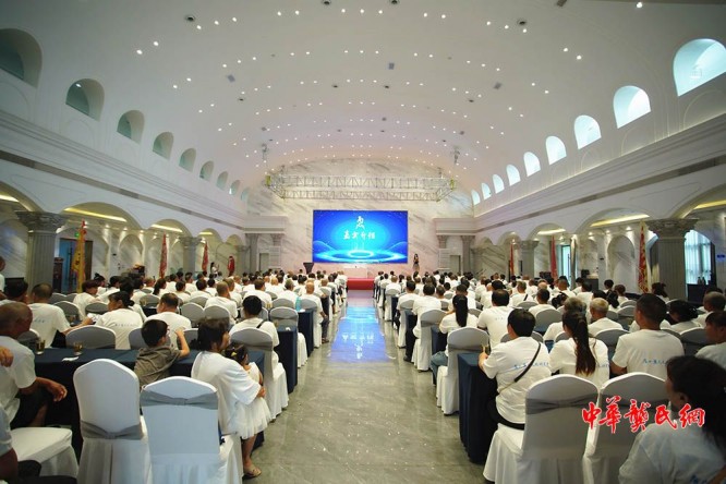 最后,全体与会人员合影留念。本次会议省宗亲会会长向大会赞助伴手礼金宫调料大礼包230件,副会长龚小艳赞助酱香型白酒10件。