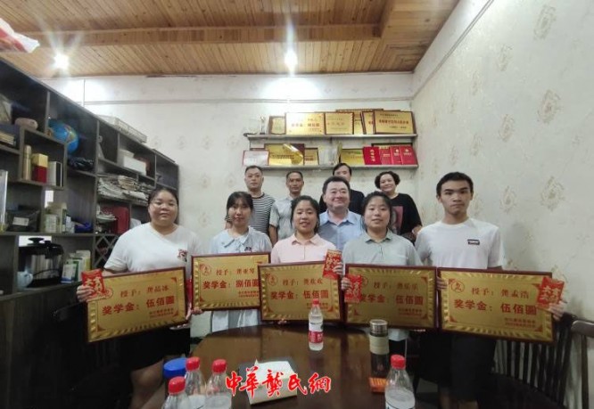 受表彰的学子和宗亲会会长、秘书长、副会长合影留念