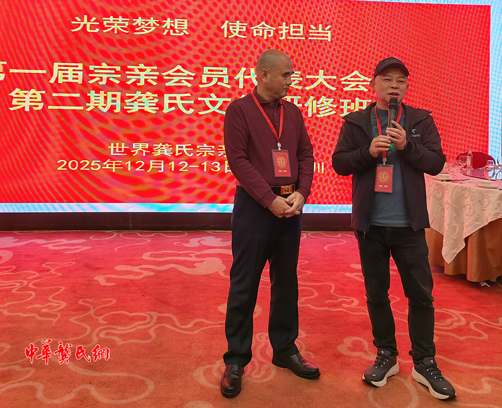 中华龚氏网深圳讯 2025年12月13日,四川省龚氏宗亲总会监事长龚险峰、执行会长龚德才兼秘书长率财务总监兼常务副秘书长龚举敏、副会长龚春会一行前往深圳罗湖区长城大酒参加世界龚氏宗亲总会举办的“光荣梦想 使命担当”第一届宗亲会员代表大会暨第二期龚氏文化研修班。并在此与来自全国各地的龚氏宗亲代表、宗贤齐聚一堂,共叙以“秉承初心,共叙血脉亲情,共商文化传承与共同发展为主题的发展大计。
