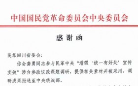 民革中央来函感谢龚勇院长对祖统工作的贡献